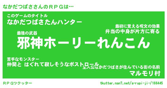 | 伝説のあだ名 | 『封印されし傭兵なかだつばさ』 |