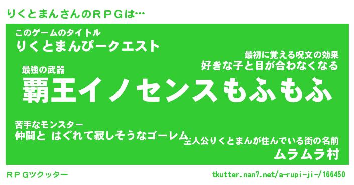 | 伝説のあだ名 | 『封印されしスナイパーりくとまん』 |