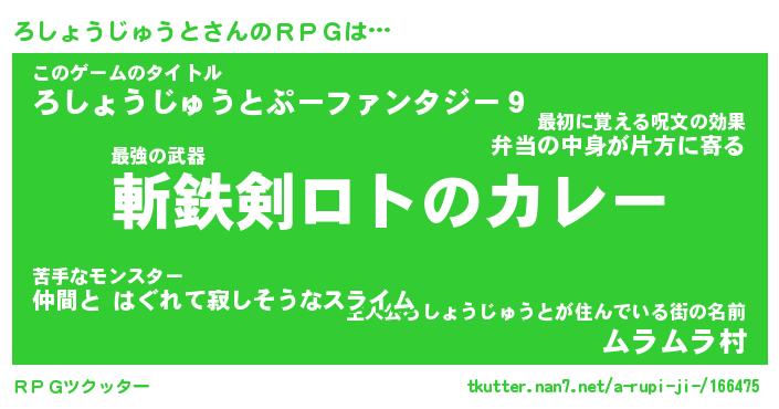 | 伝説のあだ名 | 『伝説の竜騎士ろしょうじゅうと』 |