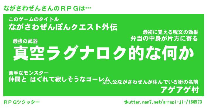 | 男性向けラノベタイトル風あだ名 | 『ナガサワゼンアートオンライン』 |