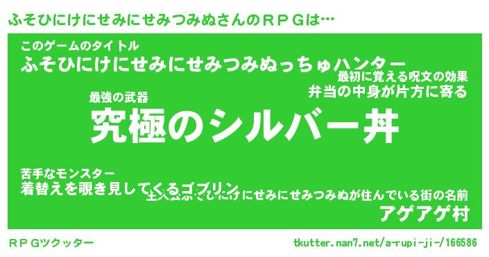 | 男性向けラノベタイトル風あだ名 | 『フソヒニケニセミニセミツミヌアートオンライン』 |
