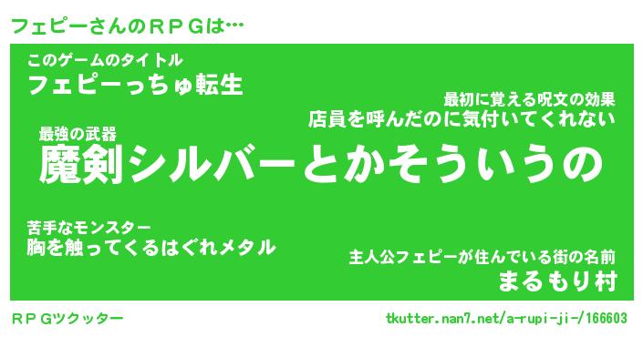 | 男性向けラノベタイトル風あだ名 | 『フェピーの憂鬱』 |