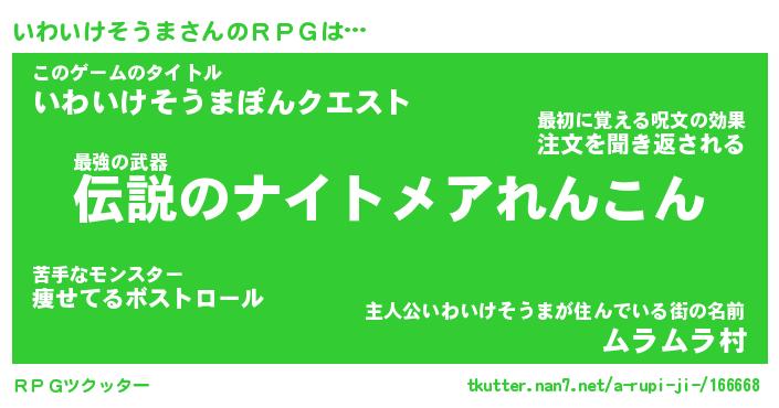 | 胡散臭い通販商品みたいなあだ名 | 『モテモテ間違いなし霊験あらたかなお札…その名も「いわいけそうま」』 |