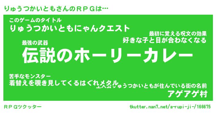 | 胡散臭い通販商品みたいなあだ名 | 『モテモテ間違いなし水晶球…その名も「りゅうつかいとも」』 |
