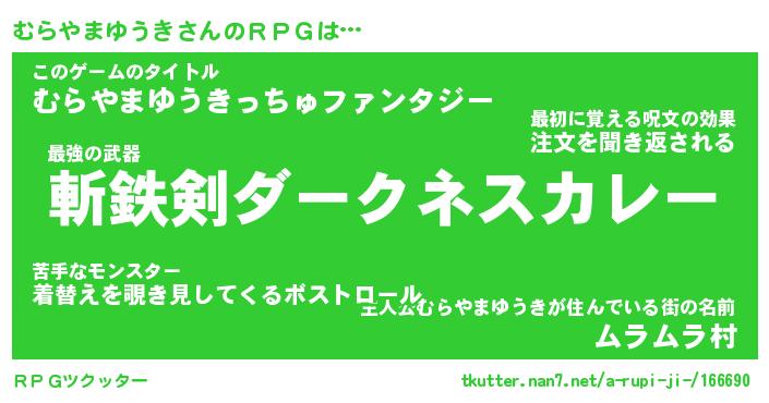 | ヒーロー風カッコイイあだ名 | 『スーパームラヤマユウキ』 |