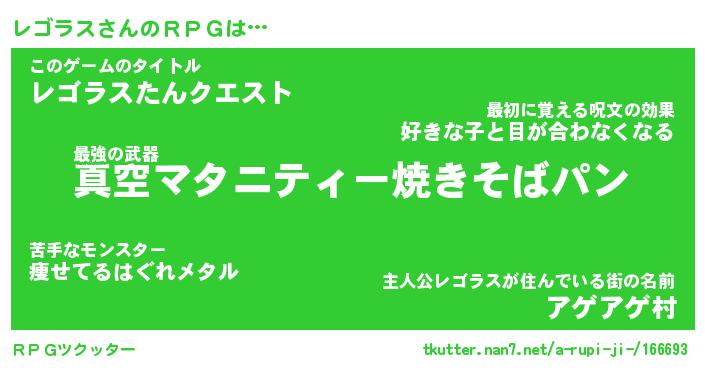 | ファンタジー風あだ名 | 『レゴフェル』『エターナルレゴラスー』 |