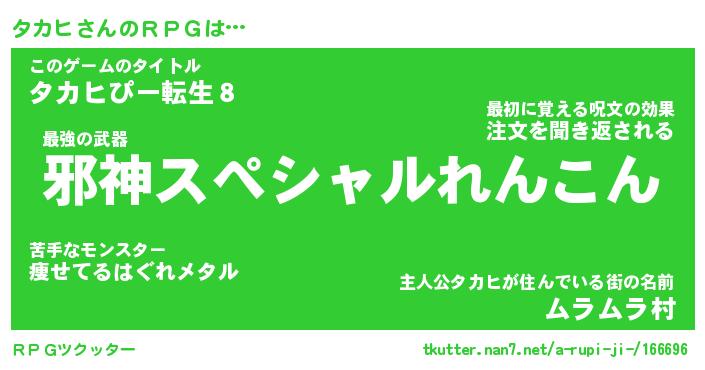| ファンタジー風あだ名 | 『タカフェル』『エターナルタカヒー』 |