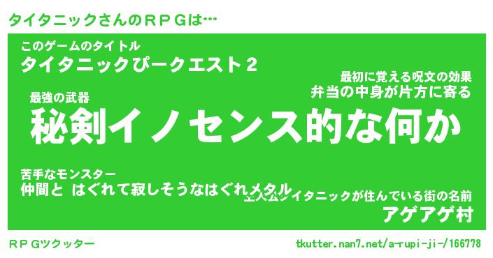 | 胡散臭い通販商品みたいなあだ名 | 『必ず成功する霊験あらたかなお札…その名も「タイタニック」』 |