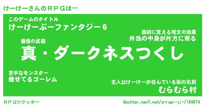 | 伝説のあだ名 | 『封印されし傭兵けーけー』 |