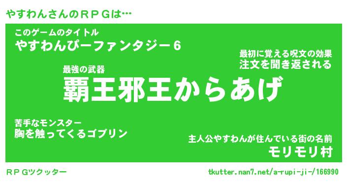 | 胡散臭い通販商品みたいなあだ名 | 『億万長者になれる水晶球…その名も「やすわん」』 |