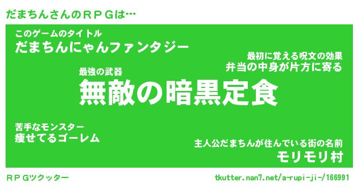 | 胡散臭い通販商品みたいなあだ名 | 『億万長者になれる水晶球…その名も「だまちん」』 |