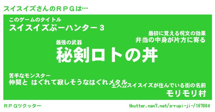 | ファンタジー風あだ名 | 『スイフェル』『エターナルスイスイズー』 |