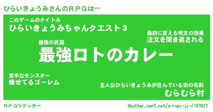 | 男性向けラノベタイトル風あだ名 | 『ヒライキョウミアートオンライン』 |