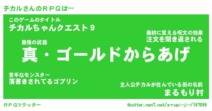 | 男性向けラノベタイトル風あだ名 | 『チカルアートオンライン』 |