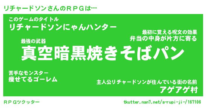 | 男性向けラノベタイトル風あだ名 | 『リチャードソンアートオンライン』 |