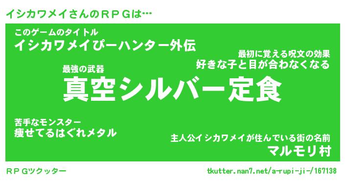 | 男性向けラノベタイトル風あだ名 | 『イシカワメイアートオンライン』 |