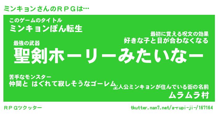 | ヘコむあだ名 | 『ミンふぇ~』『豆乳』『ミンお』 |