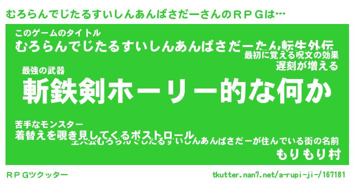 | 胡散臭い通販商品みたいなあだ名 | 『必ず成功する水晶球…その名も「むろらんでじたるすいしんあんばさだー」』 |