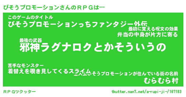 | 伝説のあだ名 | 『封印されし竜騎士びそうプロモーション』 |