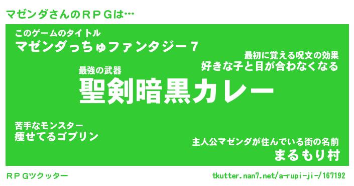 | ファンタジー風あだ名 | 『マゼフェル』『エターナルマゼンダー』 |