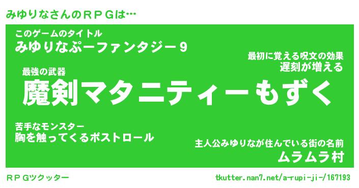 | ファンタジー風あだ名 | 『ミユフェル』『エターナルミユリナー』 |