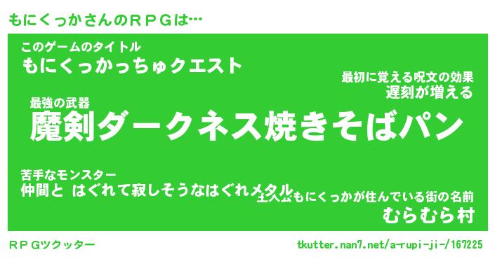 | ファンタジー風あだ名 | 『モニフェル』『エターナルモニクッカー』 |