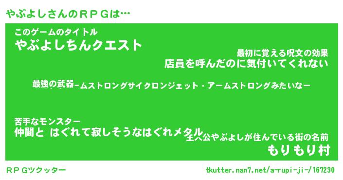| ファンタジー風あだ名 | 『ヤブフェル』『エターナルヤブヨシー』 |