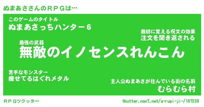 | ファンタジー風あだ名 | 『ヌマフェル』『エターナルヌマアサー』 |