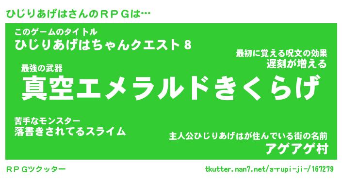 | 伝説のあだ名 | 『封印されしスナイパーひじりあげは』 |