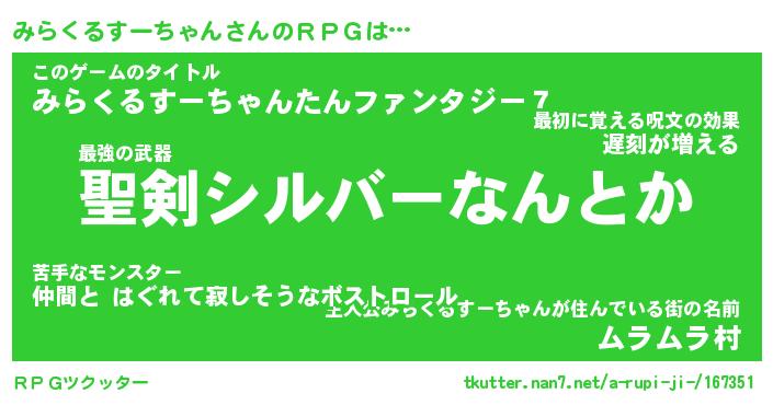 | 伝説のあだ名 | 『伝説の傭兵みらくるすーちゃん』 |