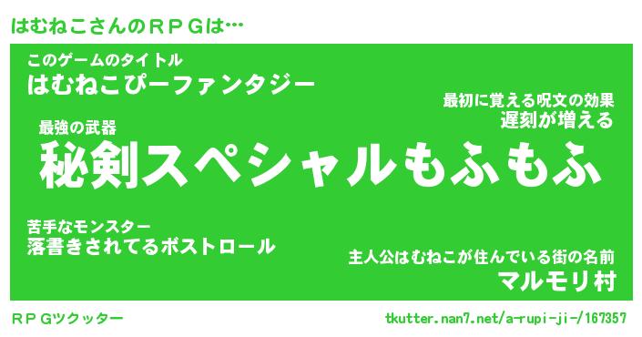 | ファンタジー風あだ名 | 『ハムフェル』『エターナルハムネコー』 |