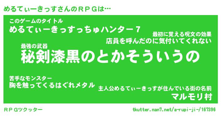 | 伝説のあだ名 | 『伝説のスナイパーめるてぃーきっす』 |