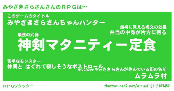 | 胡散臭い通販商品みたいなあだ名 | 『モテモテ間違いなし霊験あらたかなお札…その名も「みやざきさらさん」』 |