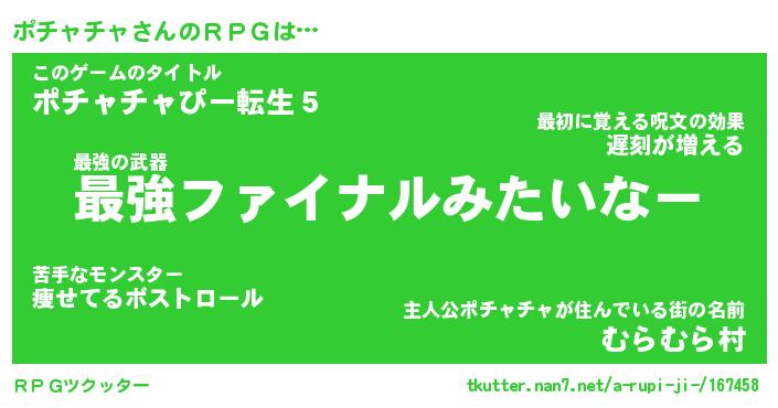 | ファンタジー風あだ名 | 『ポチフェル』『エターナルポチャチャー』 |