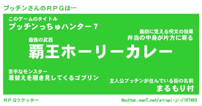 | ヒーロー風カッコイイあだ名 | 『スーパープッチン』『幻影騎士プッ』 |