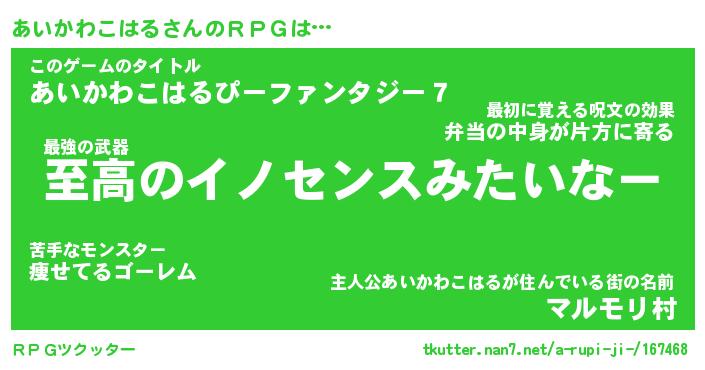 | ツイッター | あいかわこはるさんのツイッターID『dendenmushi_nyan』 |