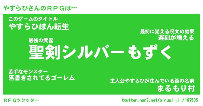 | ファンタジー風あだ名 | 『ヤスフェル』『エターナルヤスラヒー』 |