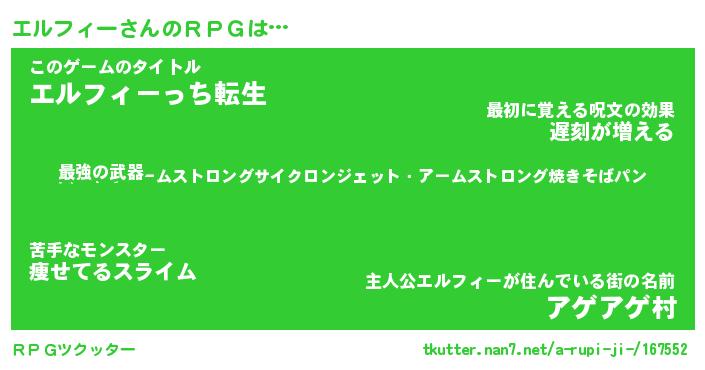 | 男性向けラノベタイトル風あだ名 | 『エルフィーアートオンライン』 |