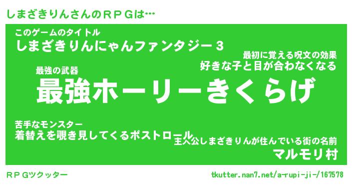 | 男性向けラノベタイトル風あだ名 | 『シマザキリンアートオンライン』 |