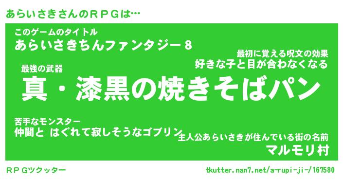 | 男性向けラノベタイトル風あだ名 | 『アライサキアートオンライン』 |