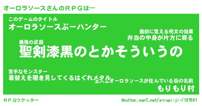 | 男性向けラノベタイトル風あだ名 | 『オーロラソースの憂鬱』 |