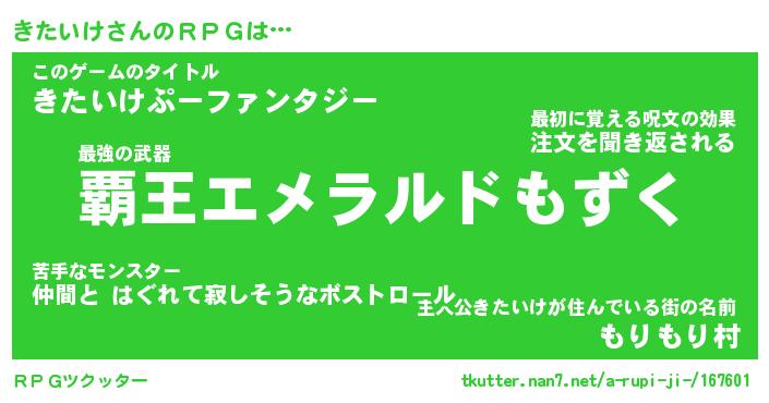 | ファンタジー風あだ名 | 『キタフェル』『エターナルキタイケー』 |