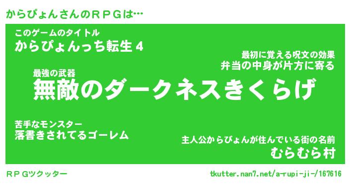 | 胡散臭い通販商品みたいなあだ名 | 『モテモテ間違いなし水晶球…その名も「からぴょん」』 |
