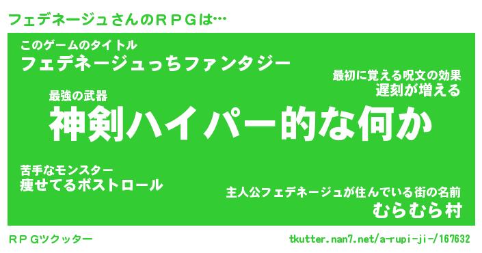 | ファンタジー風あだ名 | 『フェフェル』『ファントムフェス』 |