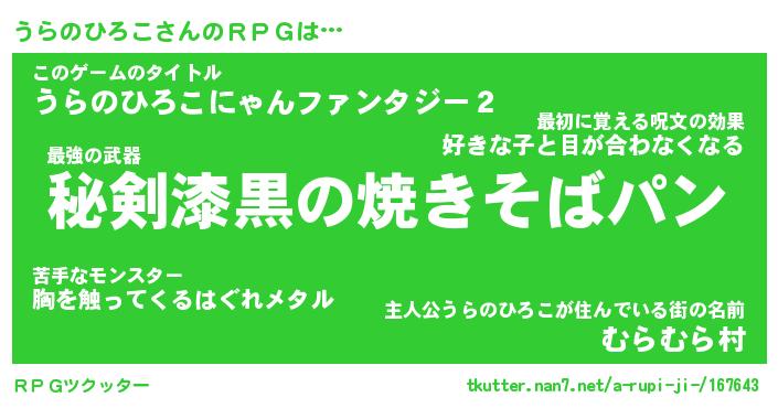 | 恥ずかしいあだ名 | 『プリティーうらのひろこ』『うらっちょ』 |