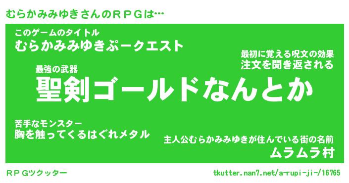 | 男性向けラノベタイトル風あだ名 | 『むらかみみゆきの憂鬱』 |