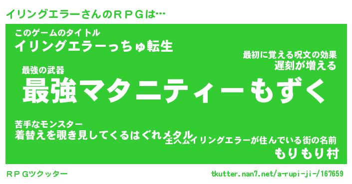 | 胡散臭い通販商品みたいなあだ名 | 『モテモテ間違いなし霊験あらたかなお札…その名も「イリングエラー」』 |
