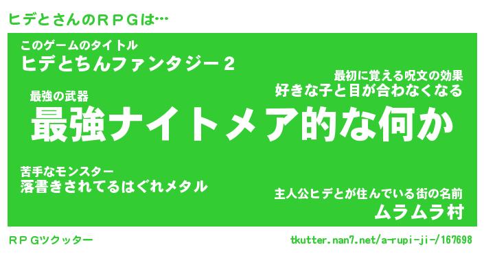 | ファンタジー風あだ名 | 『ヒデフェル』『エターナルヒデトー』 |