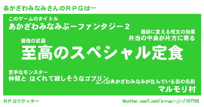 | 料理風あだ名 | 『節約★あかざわみなみと油揚げの玉子丼』 |
