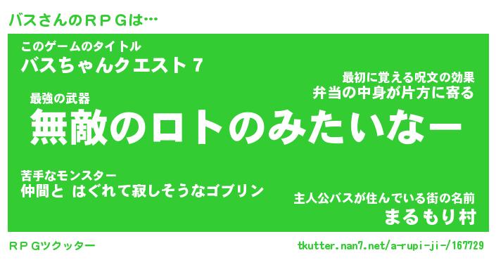 | ファンタジー風あだ名 | 『バスフェル』『エターナルバスー』 |